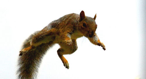 To the best of my knowledge, I have never seen a squirrel fall from a tree. You live in a rarefied world, Catherine. Now I have something else to worry about.